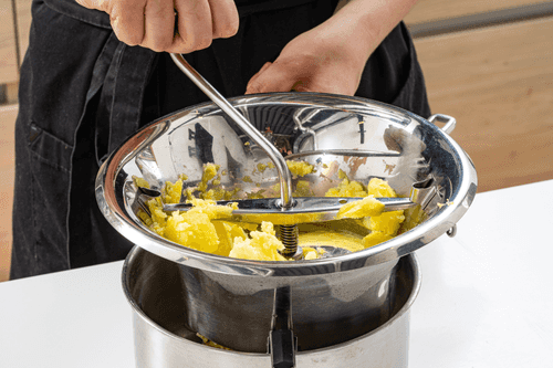 Протереть картофель через мельницу для овощей.