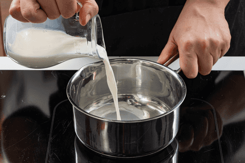Переложить картофель в сотейник, в другом небольшом сотейнике подогреть молоко почти до кипения.