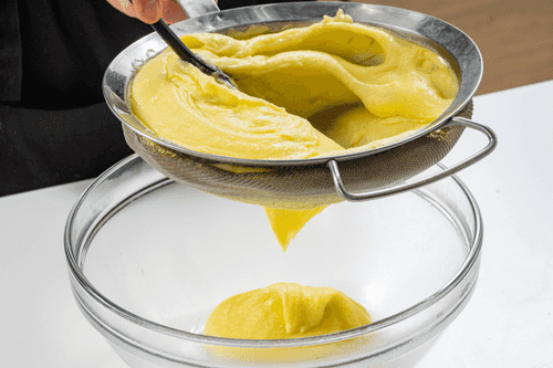 Готовое пюре протереть через мелкое сито два-три раза.