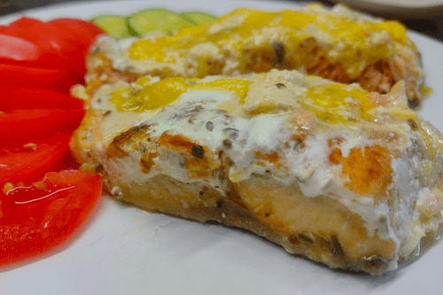 Рыба, жаренная со сметаной, – это классическое блюдо европейской кухни, обладающее нежным вкусом и аппетитной золотистой корочкой. Истоки его приготовления уходят в старинные рыбацкие поселения, где свежая рыба обжаривалась в масле и дополнялась кисломолочными продуктами для придания мягкости и насыщенности. В данном рецепте используется кета, которая подчеркивает гармонию вкусов: сочная текстура, легкая острота специй и бархатистая сметанная заливка. Это блюдо идеально подойдет как для уютного семейного ужина, так и для праздничного застолья. Оно прекрасно сочетается с свежими овощами, зеленью или картофельным гарниром, создавая сбалансированное и питательное угощение. Простой процесс приготовления делает его доступным даже для новичков в кулинарии, а результат неизменно радует богатством вкуса.