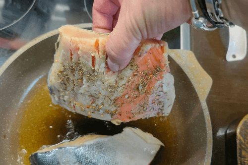 Рыбу положить на разогретую сковороду.