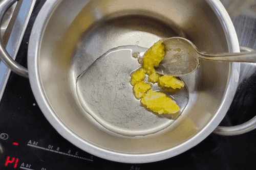 В кастрюльке нагреть вторую половину растительного и топленого масла.