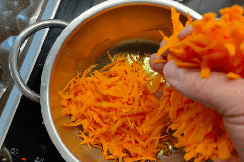 Положить морковь в разогретое масло и обжарить до полуготовности.