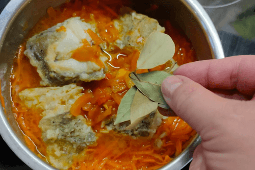 Посолить и добавить 2 штуки лаврового листа.