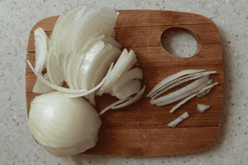 Лук нашинковать полукольцами.