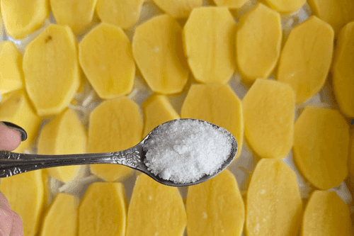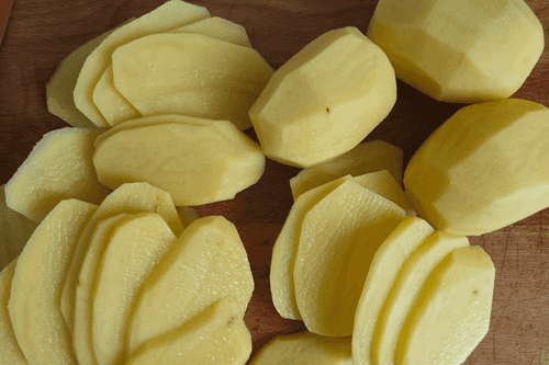 Картофель очистить и нарезать тонкими кружочками.