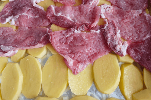На картофель выложить мясо.