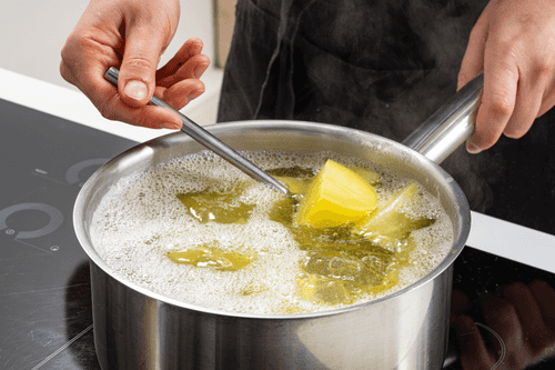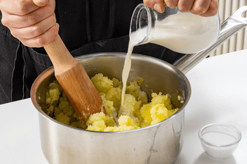 Вмешать в горячее пюре молоко, посолить по вкусу.