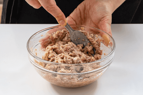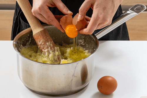 В остывшее пюре вмешать яйца.