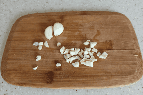 Как только блюдо будет готово, добавить нарезанный чеснок и убрать с огня.