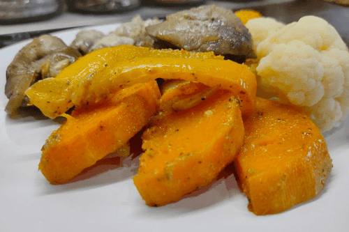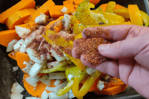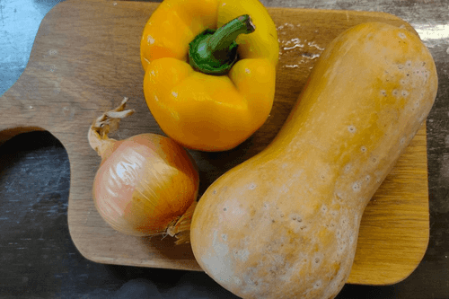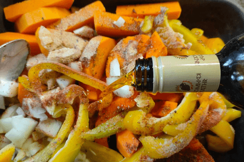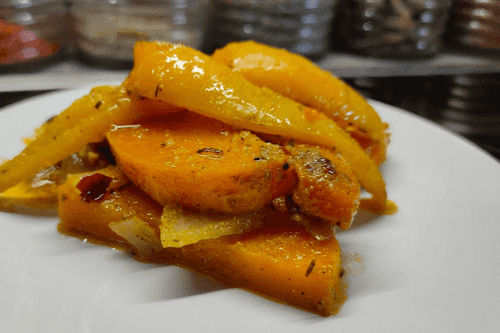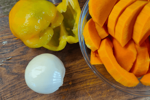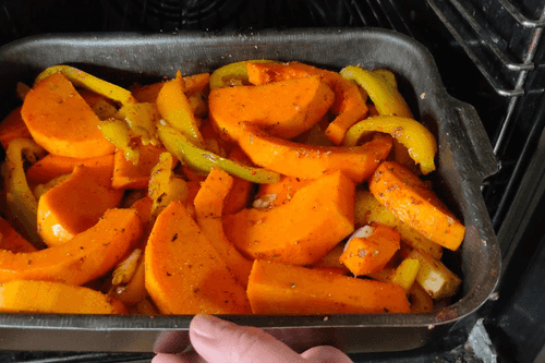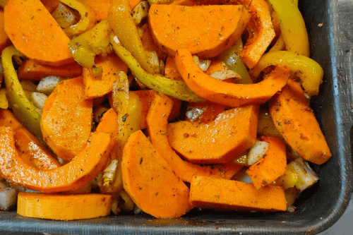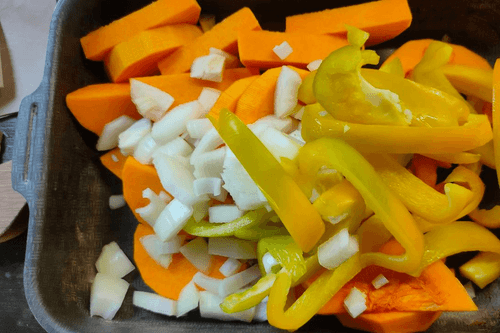 Тыква, запеченная со сладким перцем и луком