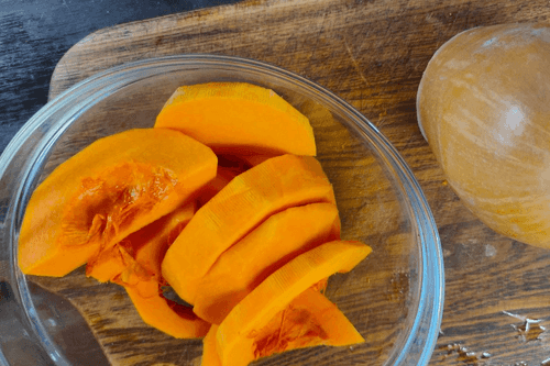 Сложить в миску очищенную тыкву.