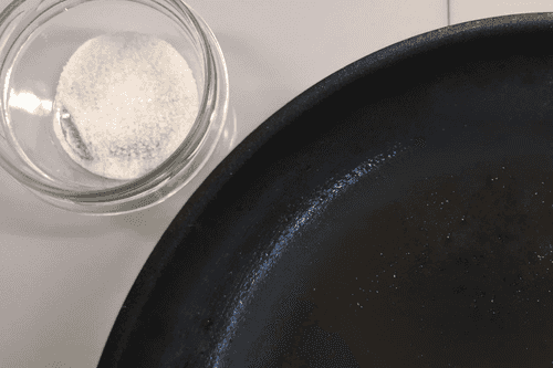 На сковороде разогреть оливковое масло с щепоткой крупной соли.