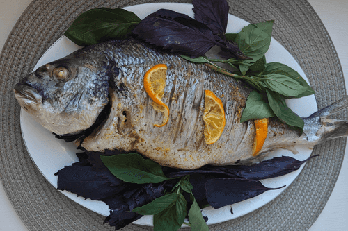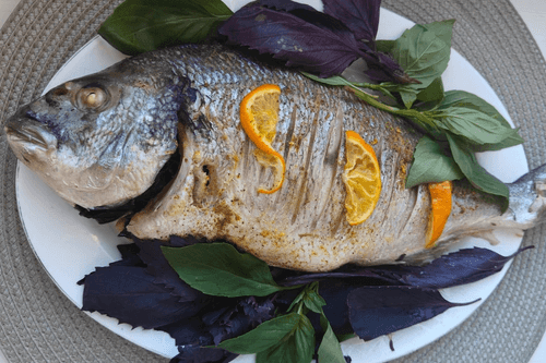 Дорада со свежим базиликом
