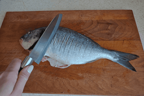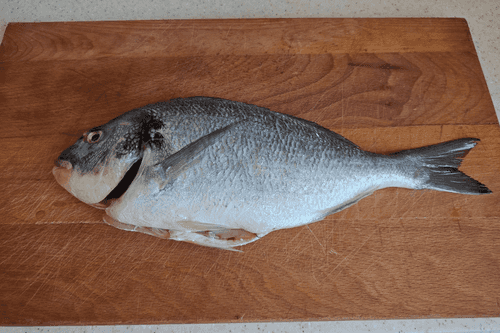 Дораду помыть, удалить излишки и просушить бумажным полотенцем.