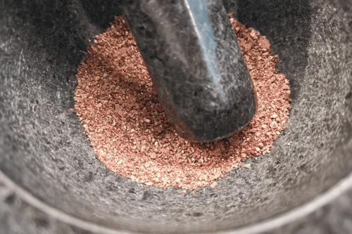 Поместить в ступку сумах, смесь перцев горошком и соль.