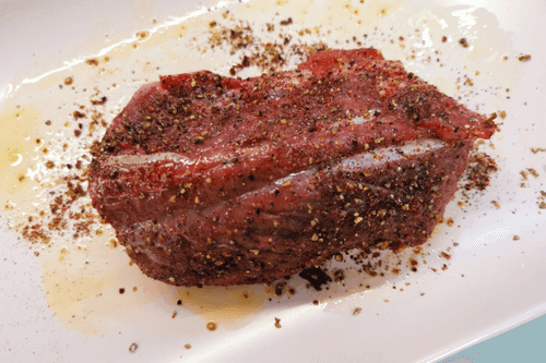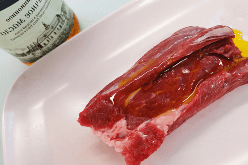 Говядину смазать горчичным маслом.
