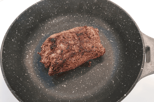 Снять мясо со сковороды и дать остыть пару минут.