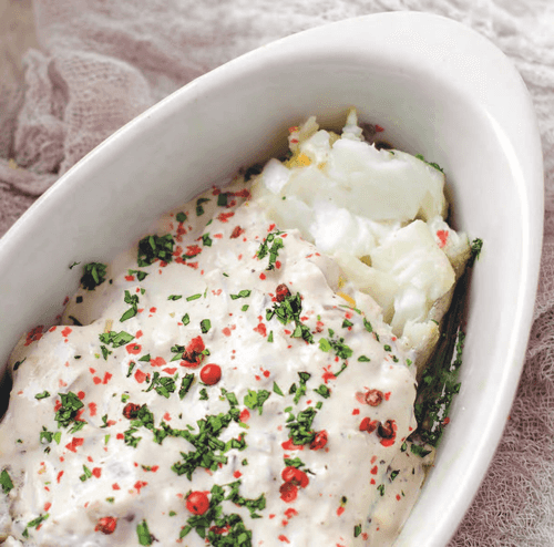 Запеченная треска с розовым сливочным соусом