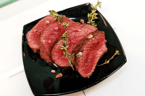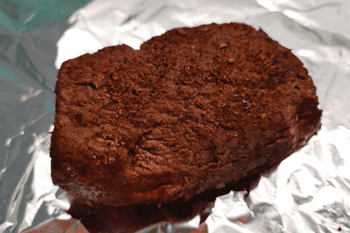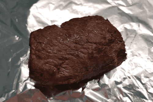 Выложить стейк на тарелку и дать подышать 5–10 минут.