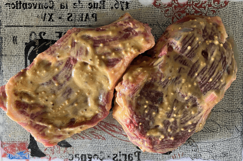 Смазать стейки дижонской горчицей.