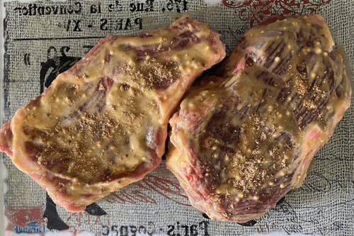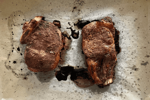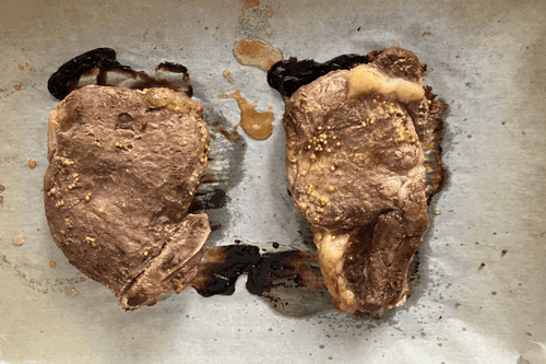 Поставить стейки в предварительно разогретую до 180 градусов духовку на 1 час.