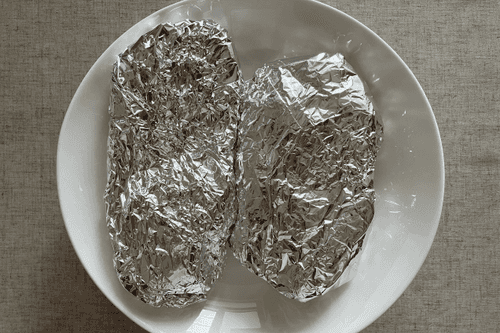 Завернуть стейки в фольгу.