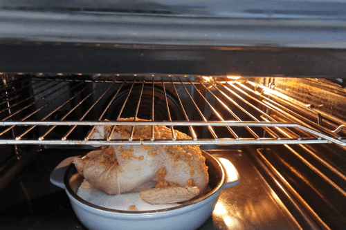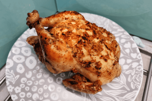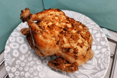 Через 35–40 минут курица готова! Дать ей немного остыть и подавать.