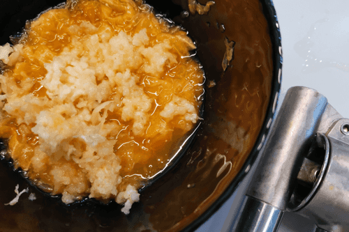 Так же поступить с имбирем или натереть его на мелкой терке.