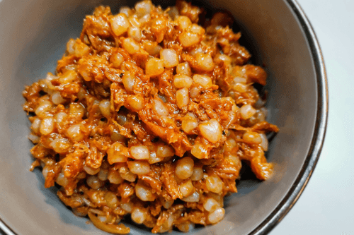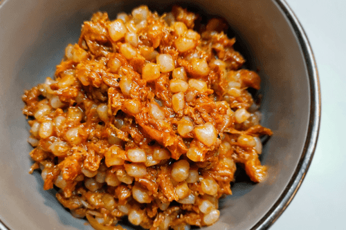 Рис ширатаки по-флотски — это современная интерпретация классического русского блюда, вдохновленного традиционным «макаронами по-флотски». Легкий, но сытный, он соединяет насыщенный вкус говяжьей тушенки с воздушными и низкокалорийными лапшами ширатаки. Острота соуса шрирача и кисло-сладкие нотки томатной пасты придают блюду пикантность, а свежемолотый черный перец раскрывает глубину вкуса мяса. Идеально подходит для быстрого и питательного ужина, сохраняя насыщенность вкуса без лишних калорий. Такое блюдо легко готовится и отлично гармонирует с простыми гарнирами или свежими овощами. Прекрасный выбор для тех, кто ценит традиции, но стремится к легкости и полезному питанию.
