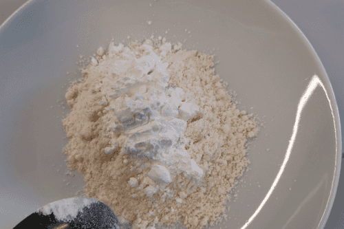 В блюдце объединить кокосовую муку и кукурузный крахмал.
