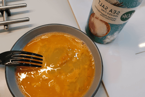 В глубокой миске перемешать яйцо с солью.