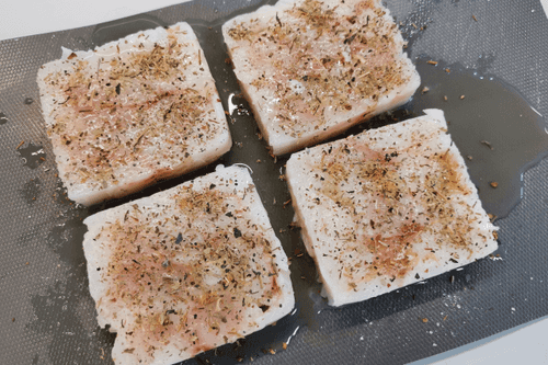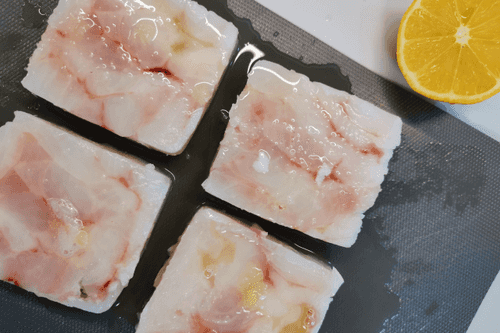 Минтай сбрызнуть лимонным соком.