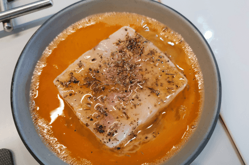 Через 5 минут рыба готова. Переложить на блюдо и подавать.