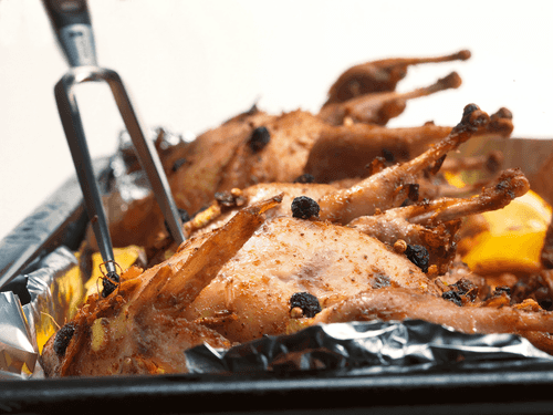 Приготовление этих птиц занимает совсем немного времени, однако предварительное маринование на несколько часов крайне желательно. Магрибская кулинария отличается неспешностью, словно у них есть целая вечность для приготовления блюд. В качестве альтернативы сухой ягоде в маринаде можно применять клюкву, бруснику или другие дары леса и сада. Не забудьте также включить в маринад традиционную арабскую приправу, известную как куркума.