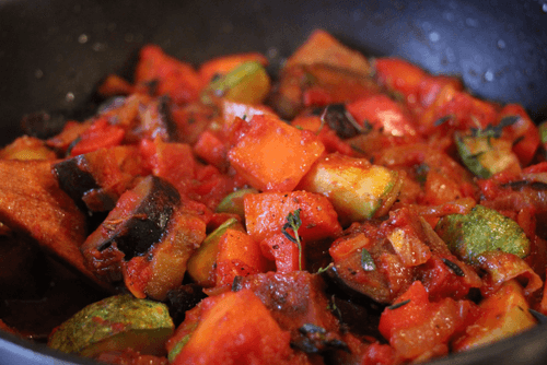 Перед подачей сбрызнуть рататуй смесью бальзамического уксуса с двумя столовыми ложками оливкового масла с солью и перцем.