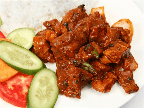Нагреть масло в воке или обычной сковороде. Обжарить ягнятину, нарезанную тонкими полосками, в течение нескольких минут и, не доведя до полной готовности, добавить мелко порезанный чеснок, устричный и рыбный соусы, сахар и мелко порезанный свежий чили. Жарить все вместе 1–2 минуты, попробовать и добавить немного сахара, соусов или чили в случае необходимости.