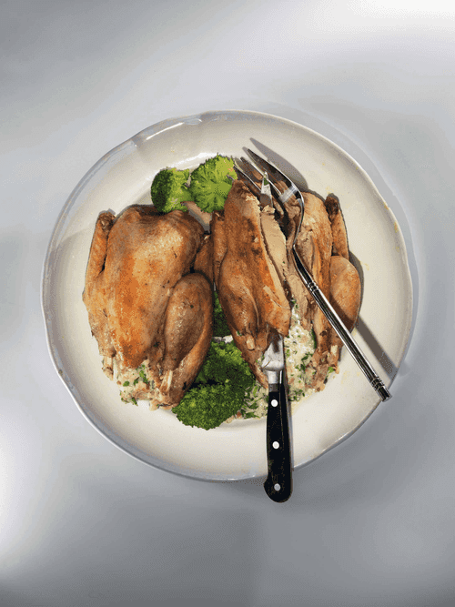 Цесарка, фаршированная творожным сыром и ветчиной, — это изысканное блюдо, достойное королевского стола. В европейской кухне эта птица ценится за нежное и сочное мясо, которое прекрасно сочетается с кремовым сыром и пикантной ветчиной. Начинка, обогащённая чесноком, петрушкой и жареным беконом, придаёт блюду многослойность вкуса — сливочную мягкость, солоноватую насыщенность и легкую пряную ноту. Медленное запекание в окружении ароматных овощей делает мясо еще более сочным, а наполненная начинка становится насыщенным гарниром. Подача цесарки в порционных кусках с руколой превращает её в праздничное угощение, которое впечатлит гостей своей гармонией вкусов и благородной текстурой. Это блюдо идеально для торжественных ужинов, где хочется насладиться богатством гастрономических традиций.
