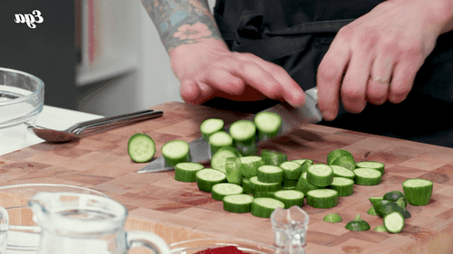 Огурцы нарезать колечками и поместить в остывший маринад. Оставить на 30–50 минут.
