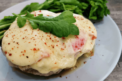 Свиная корейка по-французски – это блюдо, которое объединяет русскую кухню с французским шармом. Готовится оно из нежной свиной корейки, пропитанной ароматами специй, пикантного соуса из сметаны, майонеза и горчицы. Сверху мясо покрывается слоями сочных томатов, лука и сливочного сыра сулугуни, который при плавлении создает нежную текстуру. Блюдо получается с насыщенным, мягким вкусом, где сочетаются пикантность и сливочная нежность. Исторически такой способ приготовления мог возникнуть под влиянием французской кулинарии, пришедшей в Россию в эпоху дворянства. Идеально подходит для торжественных ужинов и уютных семейных посиделок, особенно с гарниром из свежих овощей или картофеля. Подача с кресс-салатом добавляет свежесть и легкость.
