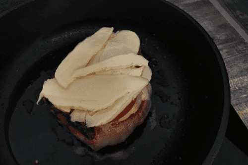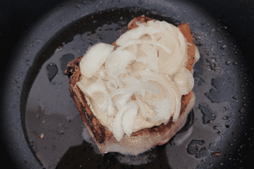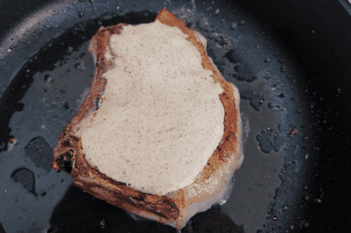 Убавить огонь и перевернуть. Выложить сверху приготовленный соус.
