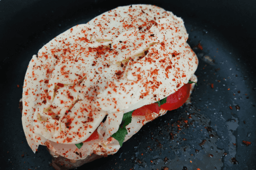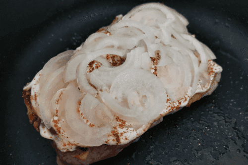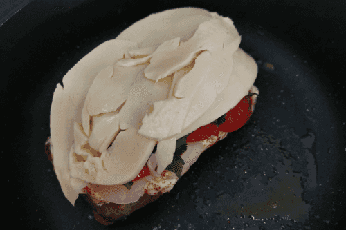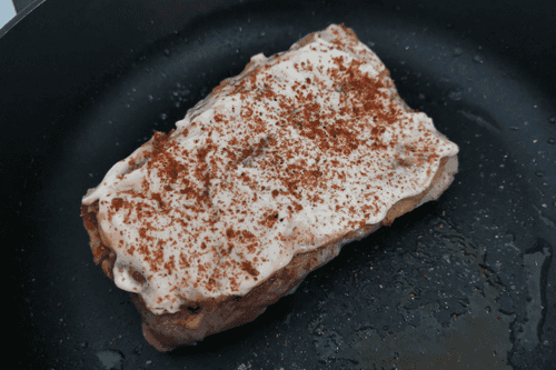 Перевернуть, посолить и убавить огонь. Обжаривать еще 2 минуты.