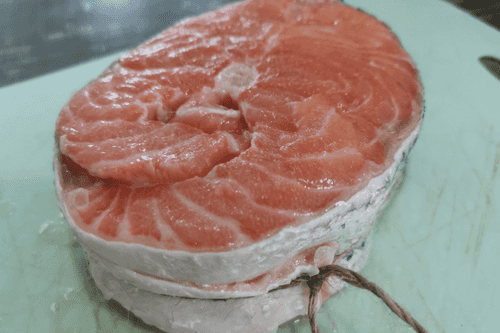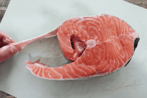 Отсоединить кожу от одного из концов стейка и завернуть этот конец внутрь.