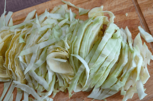 Выложить капусту на сковороду с растительным маслом и посолить.