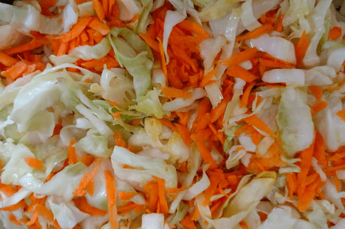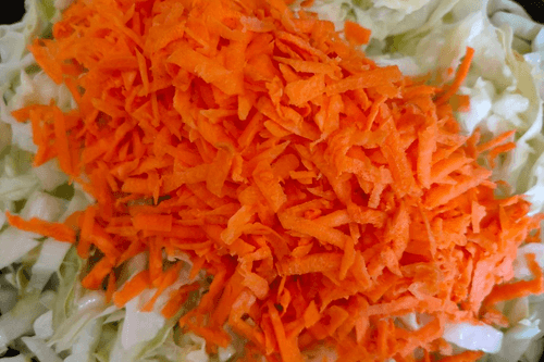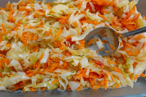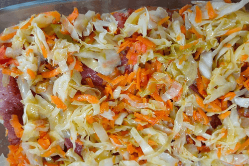 Сверху добавить оставшуюся овощную смесь и равномерно распределить.