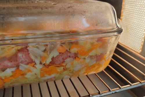 Накрыть крышкой и поставить запекаться на 30–35 минут при температуре 180 градусов.