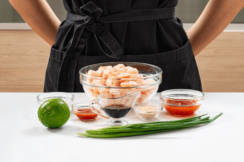 - Очищенные креветки: 500 г