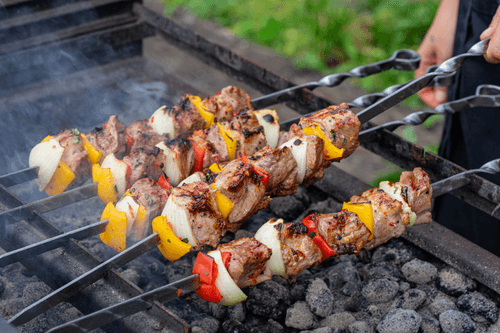 Жарить шашлык на мангале со всех сторон до румяной корочки. Чтобы проверить готовность мяса, проткнуть его ножом и убедиться, что из него вытекает прозрачный сок.