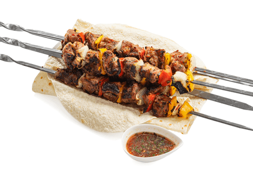 После жарки шашлык полить оставшейся частью маринада и сразу подавать на лаваше.