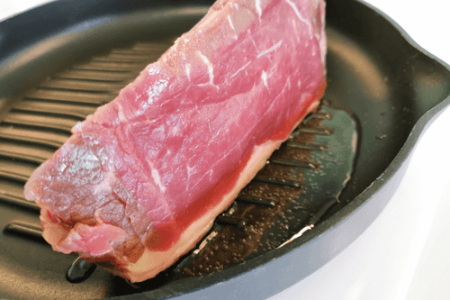 Когда жирок подрумянится, переложить стейк на одну из сторон.
